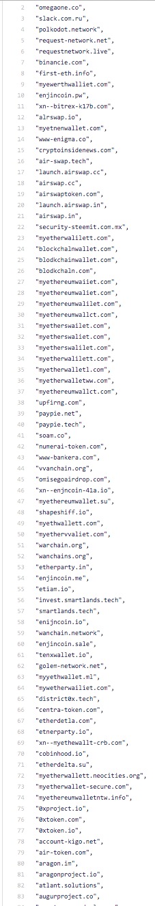 MetaMask will block you w/ a big red warning if you go to a malicious site found on our blacklists. Look at all these crypto phishing websites!